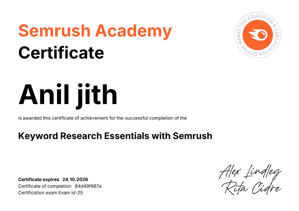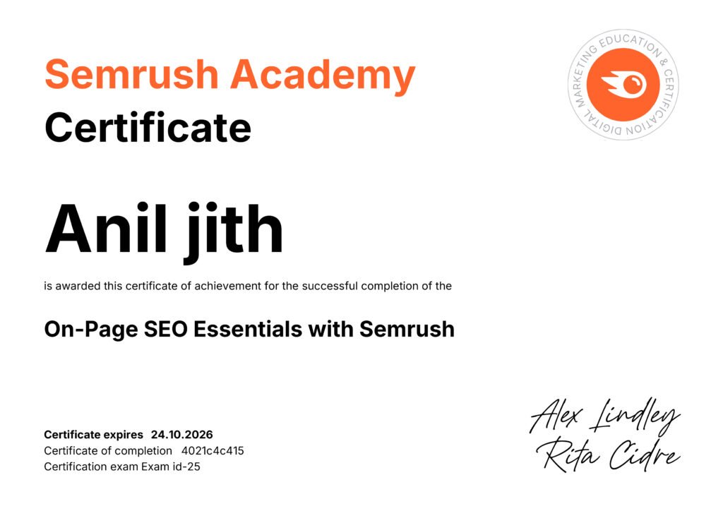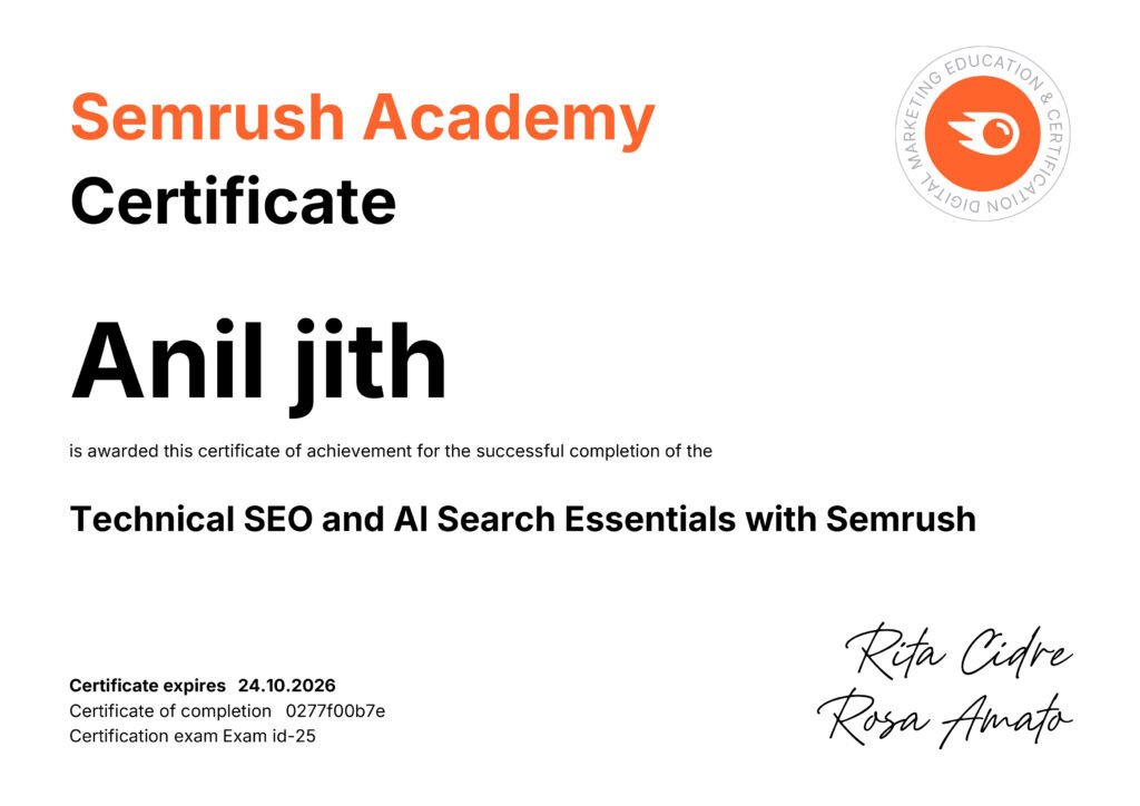 Working with Aniljith has been a great experience. His SEO services has boosted my website's visibility and significantly increased organic traffic. He is one of the best digital marketing expert in Kochi